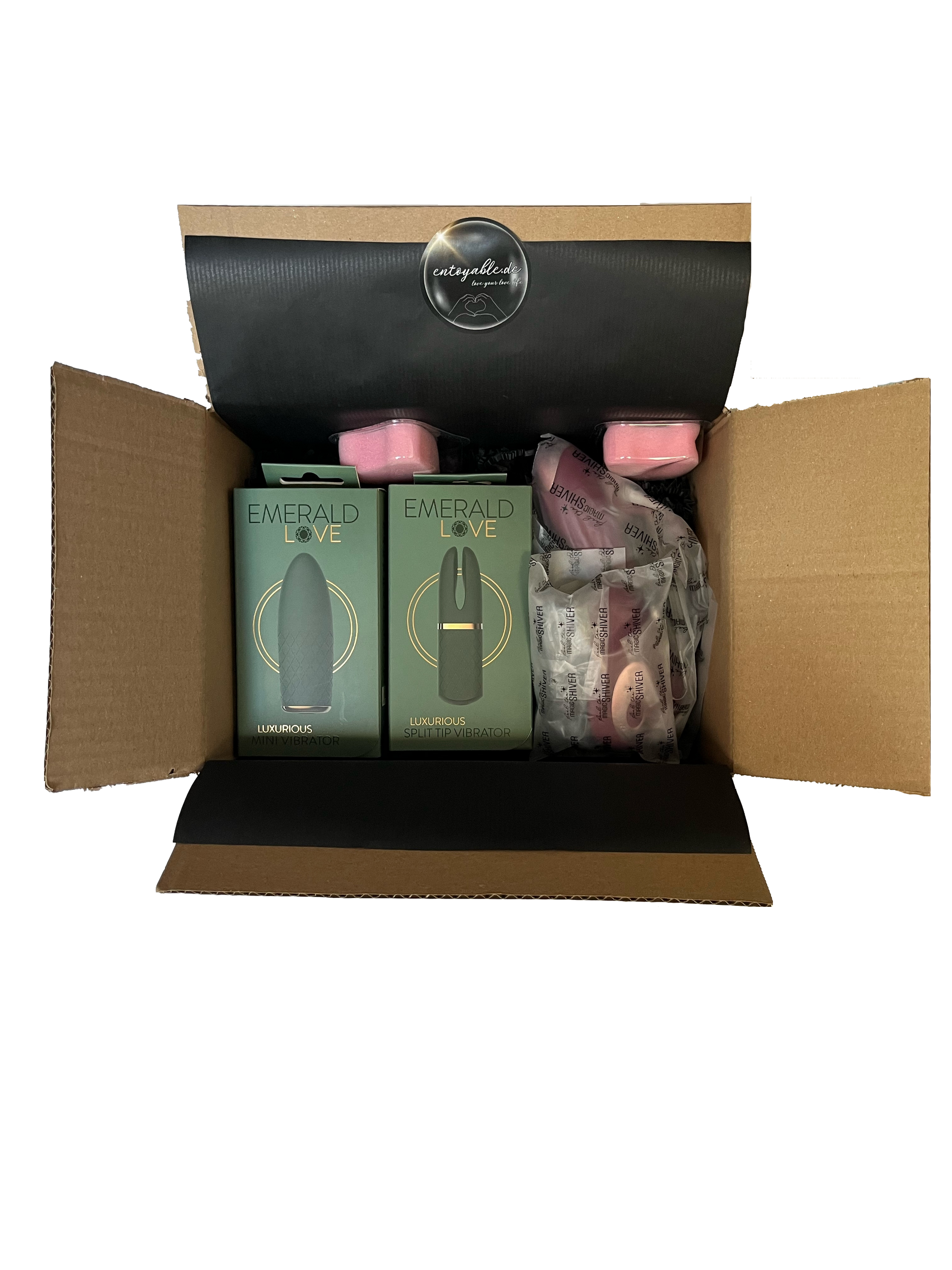 Alle vier Produkte heißen Vibrator... und sind doch ganz unterschiedlich. In dieser Box haben wir insgesamt vier Vibratoren zusammengestellt, die sich aber alle gut für den Einstieg eignen. Der Mini-Vibrator und G-Punkt-Vibrator bieten eine klassische vaginale Stimulation und unterscheiden sich vor allem in der Größe und Form. Der Split tip-Vibrator und Auflegevibrator sind dagegen für die äußere Stimulation gedacht, wobei der Split tip-Vibrator bisher noch weniger bekannt ist. Die Box eignet sich also hervorragend zum Ausprobieren und bleibt trotz der großen Vielfalt sehr preiswert.