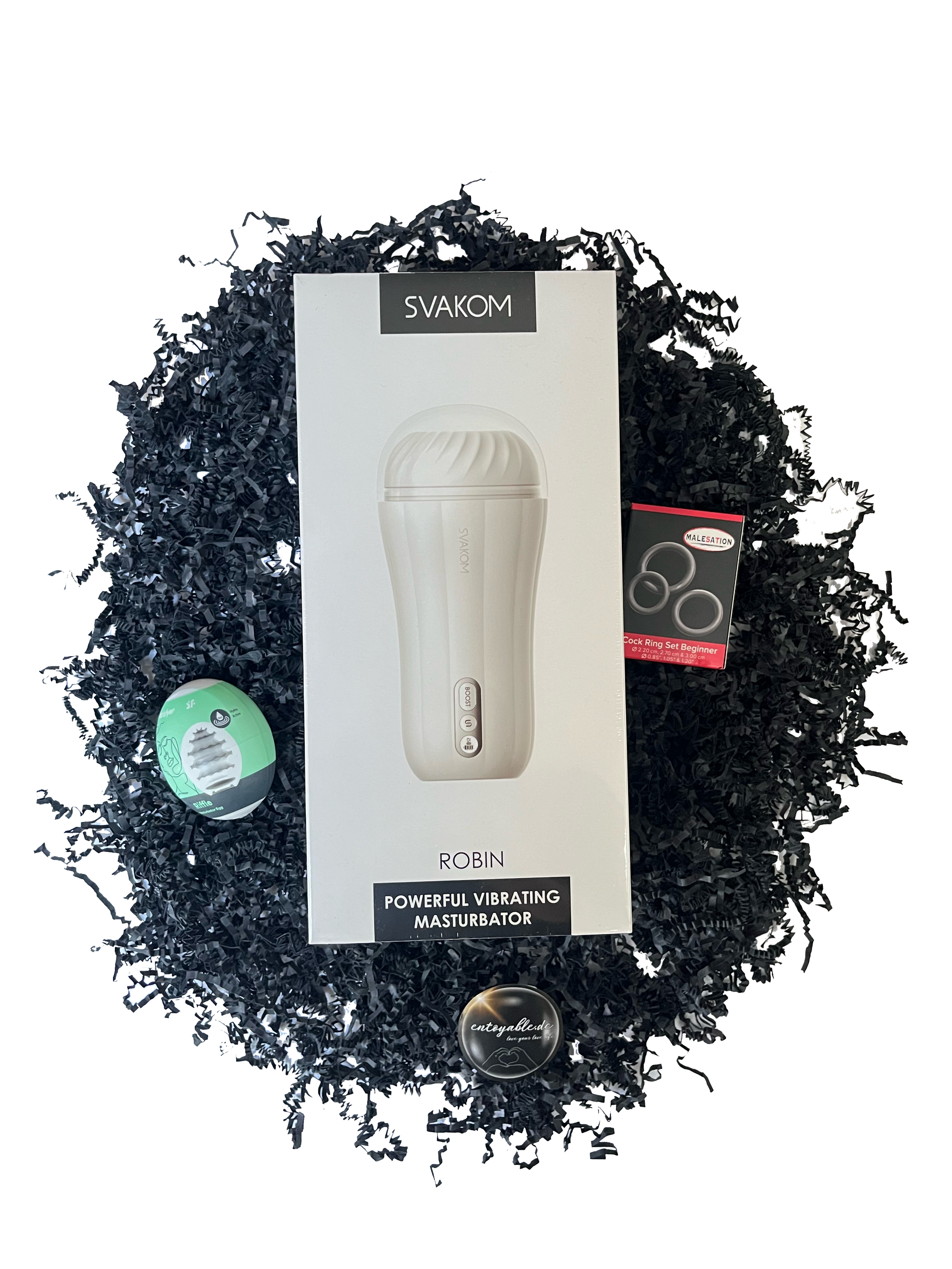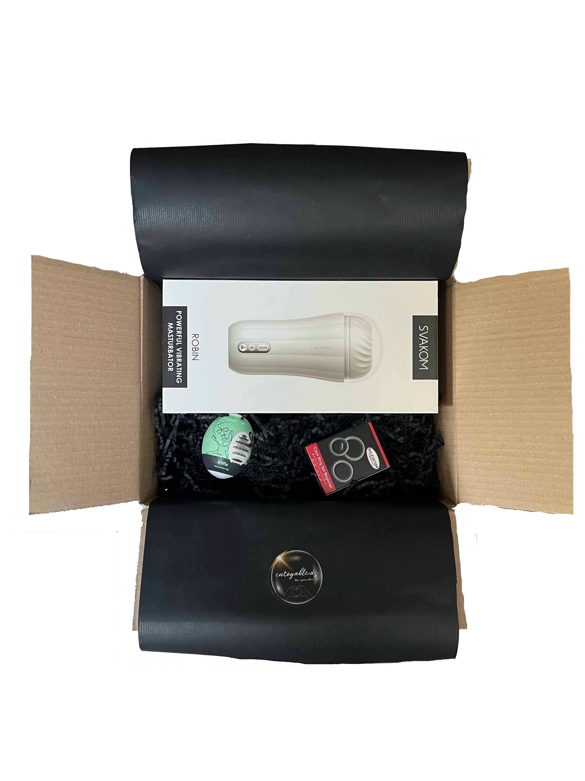 Auch Männer sollen in unserem Shop voll auf ihre Kosten kommen. Deshalb haben wir in dieser Box einen aktiv vibrierenden Masturbator mit einem passiv stimulierenden Egg, das sich überall mit hinnehmen lässt, kombiniert. So bleiben eigentlich keine Wünsche für eine klassische Stimulation offen.